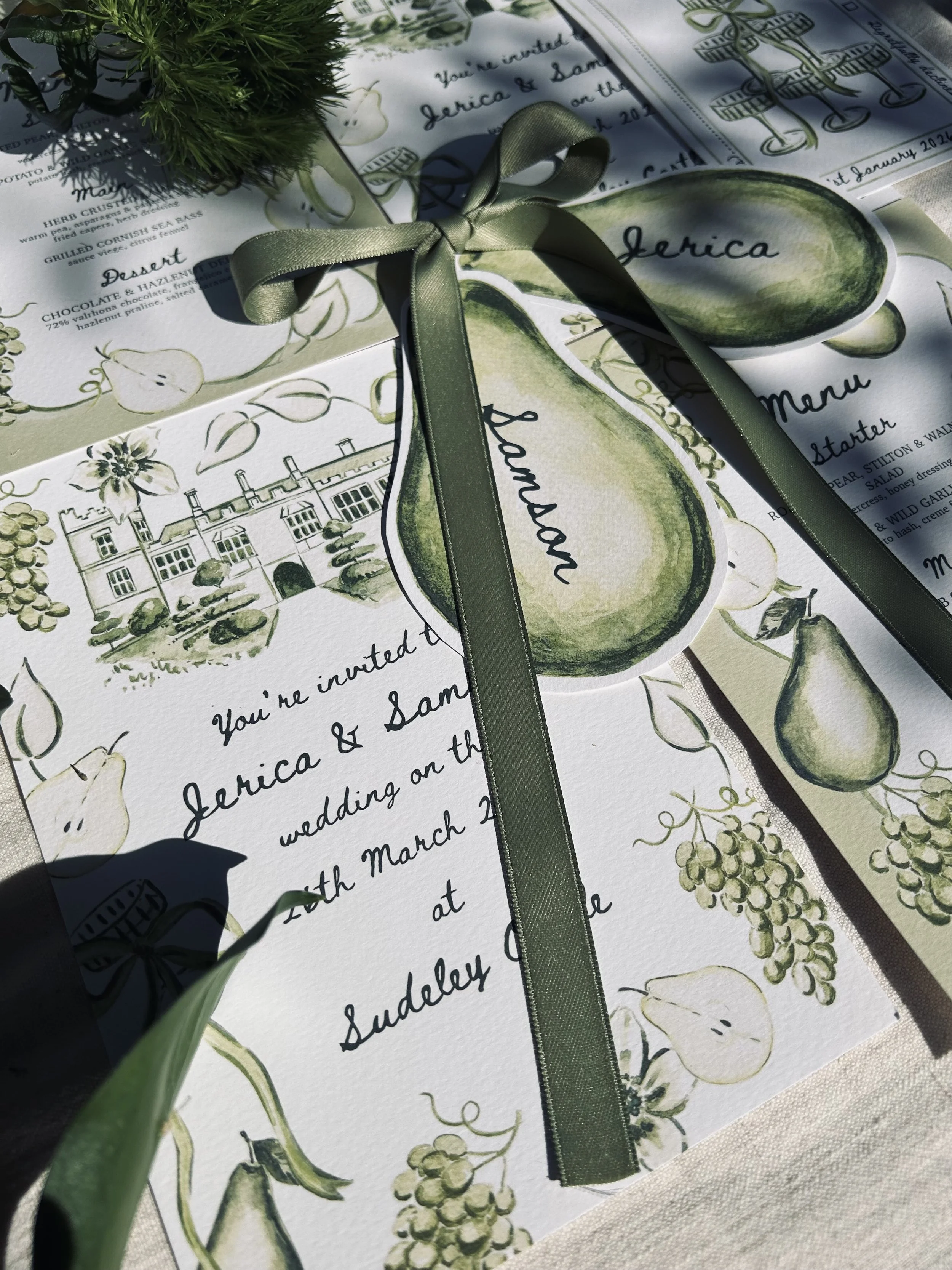 A fully bespoke suite of ten pieces, curated for a beautifully immersive experience. Every detail is artfully illustrated to create a lasting impression from start to finish.